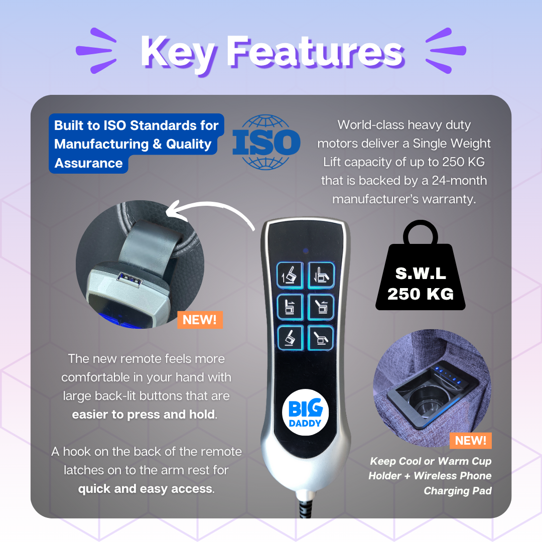 BIG DADDY Recliner Chair | Heavy Duty Motor | Lift Assist up to 250 KG